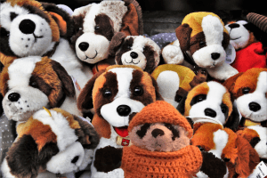 a Panda with dogs