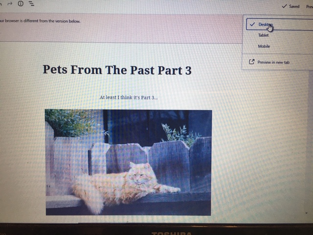 Okay I get it now. The preview isn’t quite the same as the old one was. Before, you would have to click out of your preview in order to go back to writing your post. With this version, you can edit right in the preview you’ve chosen. To go back to where you were before, you just change the preview to “Desktop”.
