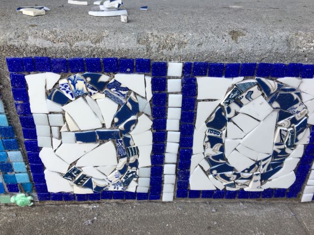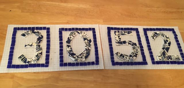 There was this little gap between the house panel and the numbers, (you can see in the previous photo how it happened on both sides of the number). But that was easy to correct by adding a few more small blue tiles in the spaces.
