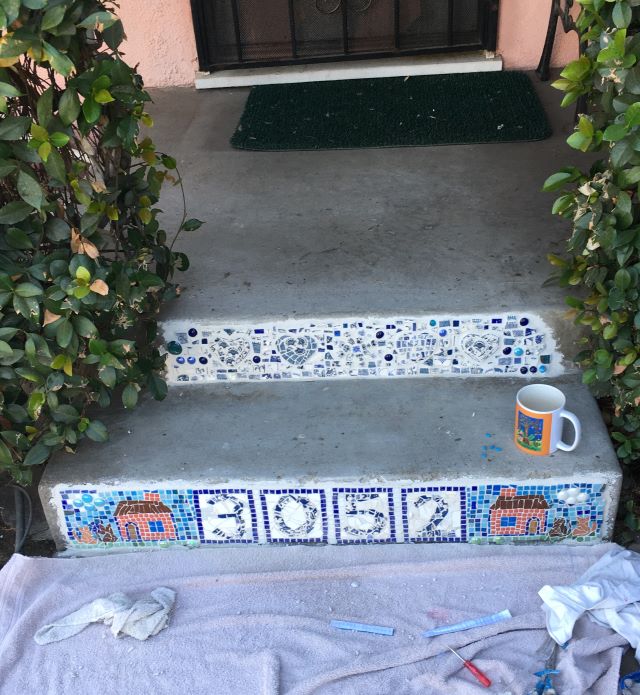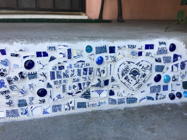 Awhile back, I decided I needed (!!) a mosaic on my front steps, but after completing it, I wasn’t satisfied with just hearts and flowers. Gradually an idea was taking shape…