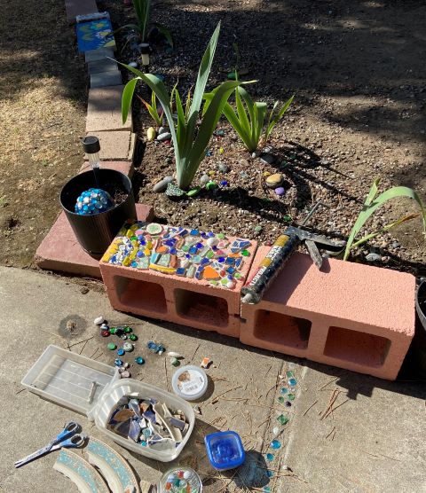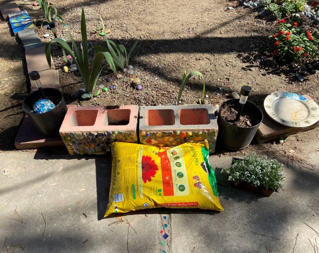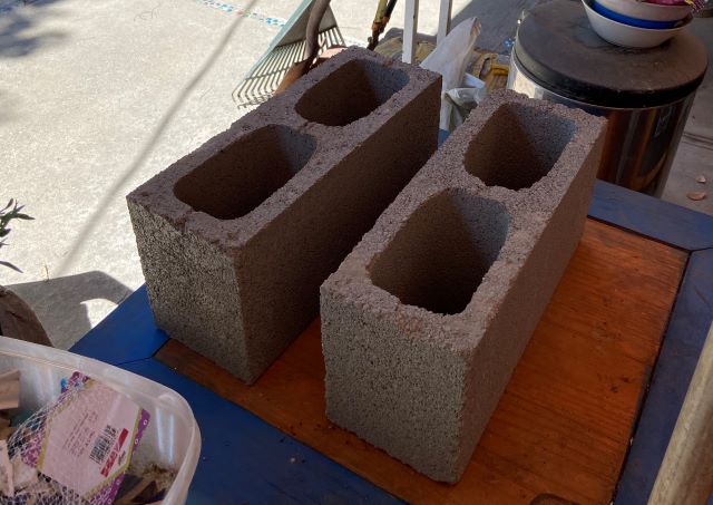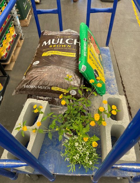 In case you noticed the cinder blocks on the cart in the picture from Lowe’s, first let me tell you that they are not anywhere near the garden section. All the other bricks and stepping stones seem to be in the garden department, but not these. For cinder blocks you have to go all the way to the other end of the store, past Lumber, to the cement aisle. I would have taken a picture of how far it was, but there was a man with a cart behind me and I was walking slowly enough as it was.