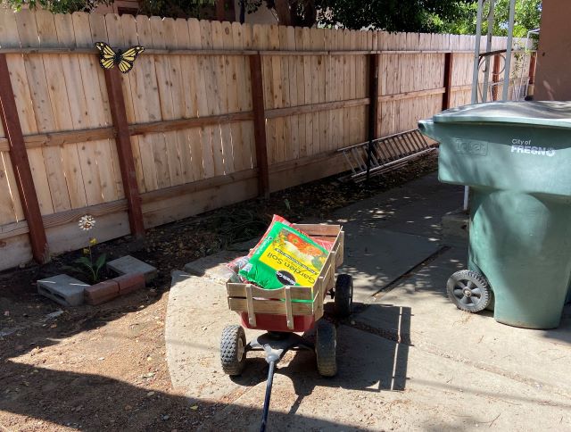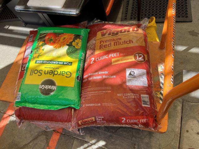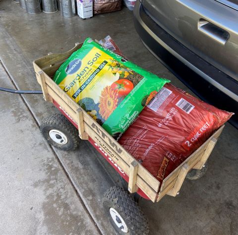 When it comes to mulch, you have to be “big girl” and figure out how you are going to move the stuff. A little red wagon is just what you need.