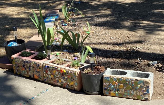I had used these two for decoration on the patio, and just recently made them into planters. Once I had two done I decided I needed more. Two was about all I could lift and push around in my Lowe’s cart, or I would have gotten more. This is no offense to anyone, but at those types of stores, you can be a small, white-haired, 62-year-old lady in a dress trying to load mulch or cinder blocks onto your cart and the employees can look right at you and not offer to help. But it may not be in their job description so I’m not going to worry about it. You just have to be “big girl” and get on with it.