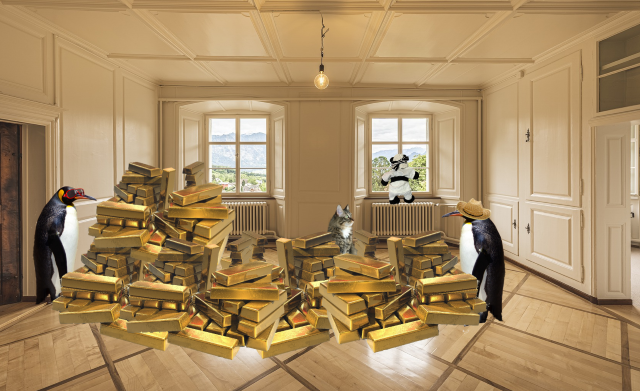 We followed them up several flights to a luxurious room that was completely filled with gold! Panda was sitting on the sofa, but the men were nowhere in sight. “Pssst! Panda!” I whispered from my hiding place behind the sofa. “Are you okay?” Panda nodded. “Yes, I’m fine,” he whispered back. “But we have to act fast. Those men will be back any minute!” He quickly related the story of how the men in the orange jackets had put him in the taxi and brought him to the apartment. “They’re running a gold theft ring,” he said. “They wanted my Olympic medal.”