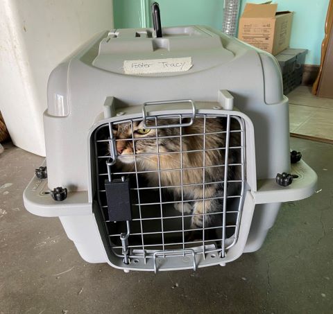 …I found myself in my cat carrier in the garage. This did not bode well. When I discovered that Panda was in there with me, I knew it could only mean one thing: we were on our way to the vet!