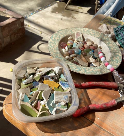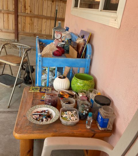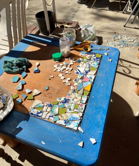 I also know that due to the nature of broken pottery mosaic, the table is not going to be a smooth surface anymore, so I probably won’t be able to use it to work on other stuff like I have in the past.