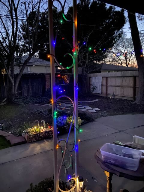 It’s because I liked the solar Christmas lights that I’d put on the front window so much that after Christmas I didn’t want to take them down. But as a favor to my neighborhood, I did, and put them up on the patio instead. Because Christmas lights are whimsical, and whimsical always makes you feel better!