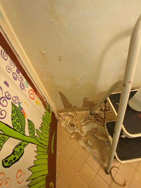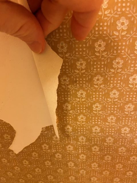 But then, in an effort to remove some little wood decorations I had stuck on the walls years ago, I realized that the wallpaper was actually pulling off at the same time.