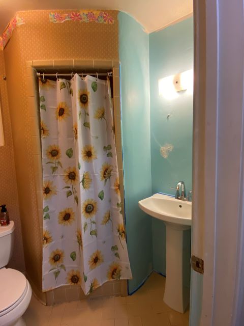 The bathroom looks great! I love all the bright colors! You are so creative!💜😊