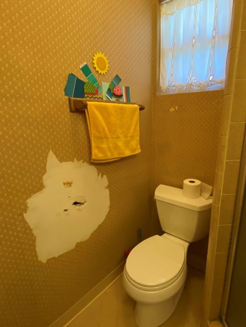 I searched “Toilet Wallpaper” and found this, which may actually be the same exact one I had. Whenever a guest would ask to use the restroom, I would always explain before they went in that I had nothing to do with the wallpaper selection!
