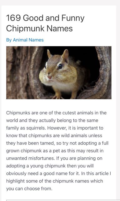 Panda suggested we go online and look up chipmunk names. I didn’t think we’d find anything, but he Googled “chipmunk names” and surprisingly we found a whole list of them.