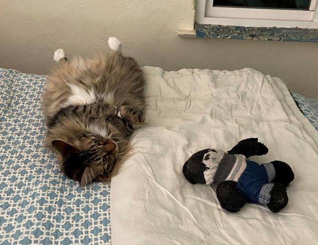 3. What a clever way to explain this, dear Debra. I’m sure that you will get over this problem. You look so great with the new chipmunk and the mittens and socks. Say ‘hi’ to Foster and Panda too! 💛🐱🐼🐿️💛🙏