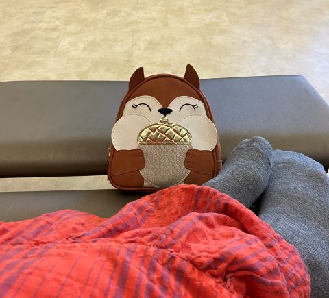 Winky agreed. “Right now she’s on a low dose of chemo combined with immunotherapy,” he explained. “She has to go once a week for twelve weeks in a row, but she’s already done three of them. She pretty much feels fine so far. But she has noticed her hair is thinning out a little.” Panda’s eyes widened. “Great,” he said, looking at me. “So now you and Mom are both shedding!” I was less than amused. “Dude, that’s not funny,” I replied. We chatted with Winky until it was time for him to go back into Mom’s chemo bag. “I’ll see you next week,” he said cheerfully as he disappeared into the sewing room.