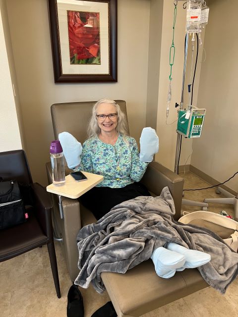 Winky laughed good naturedly. “Oh, that? Well, some of the medicine they are giving Mom could cause her to get pain and tingling in her feet and hands. It’s called neuropathy. But if she puts ice on them, it can help prevent that.”