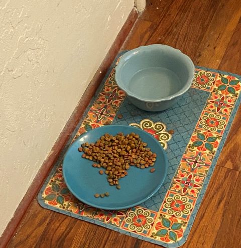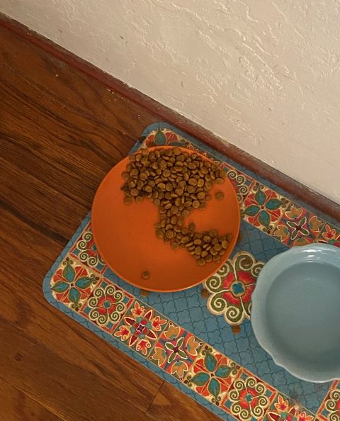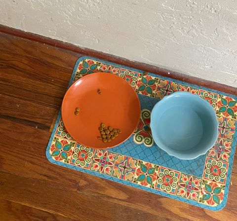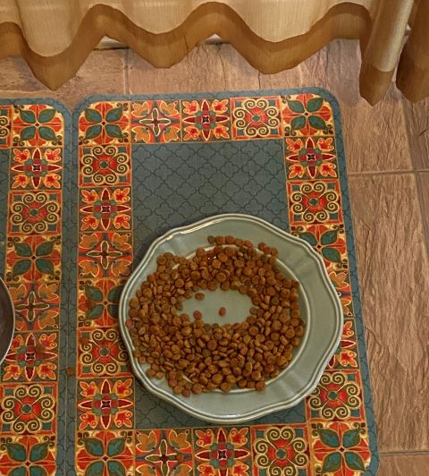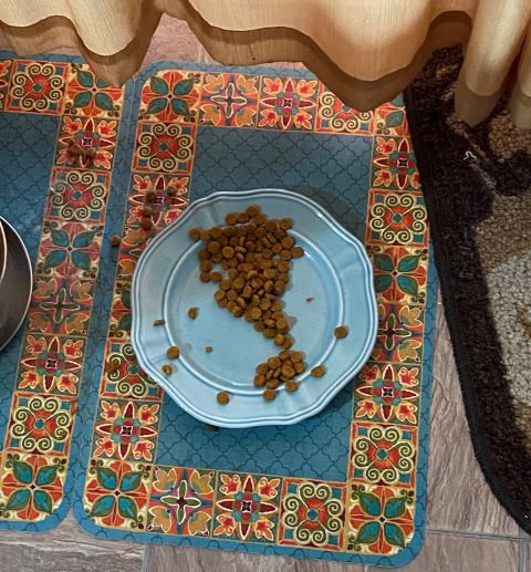 Depending on how you look at it, this one could be a hedgehog (keep staring), or just a reminder to Mom that my food dish is almost empty.