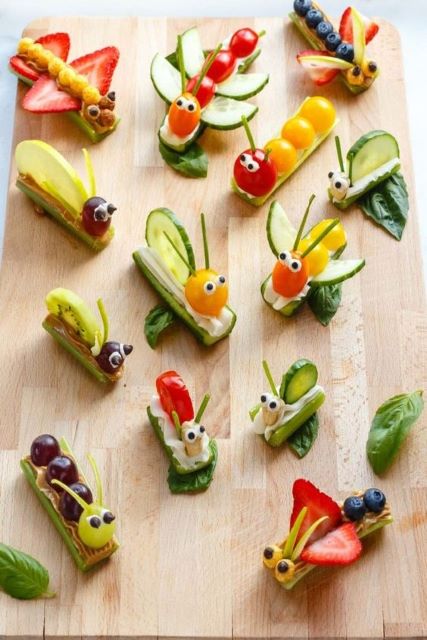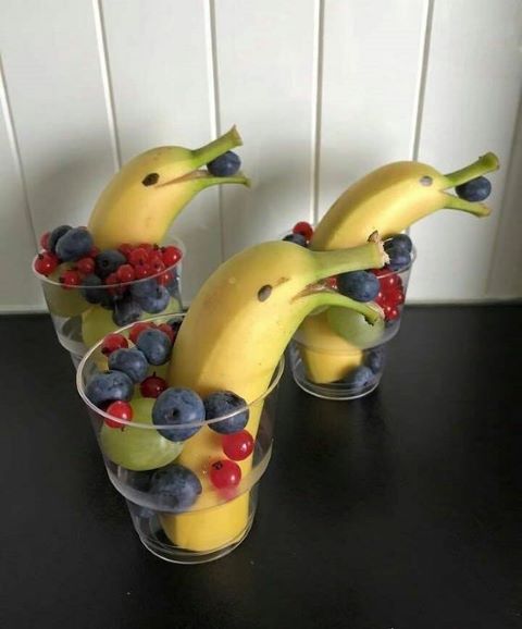 What exactly is food art? Let me show you some examples. These photos both came from Pinterest. The insect snacks were posted by “ilovevegan.com” and the banana dolphins were from “craftymorning.com“.