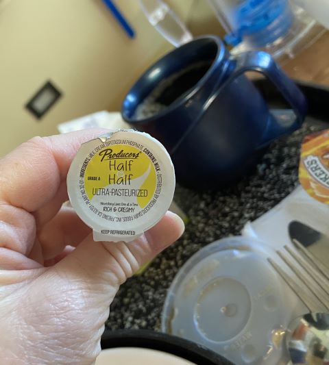 Panda clicked to the next picture. “Well, I see they gave her real half and half for her coffee,” he commented. “She said it was real coffee, too,” I said, to which Panda responded, “That’s always a plus.”