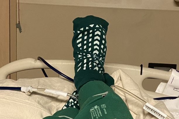 “Once she got into the pre op area,” I continued, “they gave Mom these special socks, and put these things on her legs to keep her from getting blood clots.” Panda’s eyes widened. “Those are pretty big socks!” he exclaimed. “Mom could probably make me two or three shirts out of one of those!” I agreed. “They said 3XL was the only size they had.”