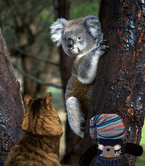 The hamster told us later that he had seen a koala in a tree and had climbed up to talk to it. “I’m looking for some penguins,” he said by way of introduction. “Have you seen any?” The koala looked at him curiously as he described our friends. “No, I haven’t,” it replied. “Don’t get me wrong, it’s not that there aren’t any penguins in Australia, but here on the mainland, we don’t have the kind you’re describing. But if you don’t mind my asking, what exactly are you?”