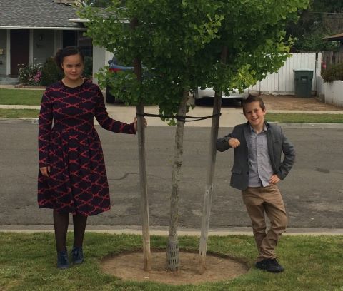 It goes without saying that my adorable grandkids have been growing! Here they are in 2016 (ages 13 and 9) and 2023 (ages 20 and 16). They are now 21 and 17. Every time they are both here together, I make them stand by the tree for a “kids and tree” photo. We started that when the city put in the baby tree in 2010. (If you want to see them with Papa Tracy in 2008, check out “Follow the Directions.”)