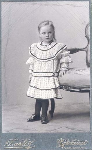 These ladies look kind of alike to me, and their dresses are even similar. I really like the dress designs. The one on the right looks like velvet to me. Both photos were taken by Louise Lefren in Stockholm. Sisters, maybe?