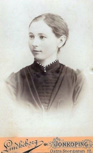 I’m pretty sure the lady on the right is my great grandmother, Petronella Magnusson (it says “Nella on the back of the photo). The lady on the left doesn’t necessarily look like her, but there are still some similarities. Maybe it’s the hair, or the dress, or the pose.
