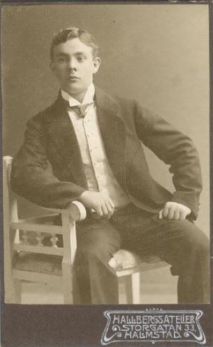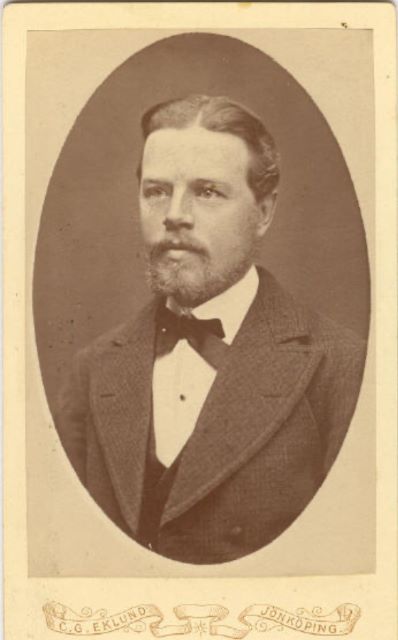 Awhile back, I decided to look for family resemblances on this really cool website, to which I was introduced by my Swedish blogging friend Thérèse. In my post “Swedish Roots”, I showed a picture of a relative (or family friend?) named JP Svensson along with an unknown person from Jönköping. Here they are again (JP is in the center) with another similar-looking man (right) from Halmstad, where AJ Hagnell apparently had a studio in addition to the one in Varnamo. Were they related? It’s possible, although it could also have been the clothing and hairstyles of the day that made them look similar.