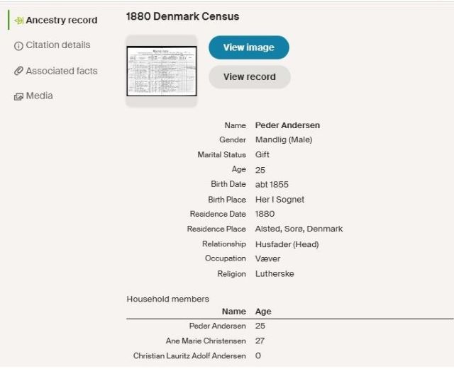 In 1880, “our” Peder and Ane Marie were still in Denmark, and their oldest son Christian was barely four months old! Not only that, but Cornelius and his family were in the US, in Rockford, Illinois! Still, this family tree had both 1880 census records on Peter’s “facts” page. Had they included them both in case one was right, or did they even realize that one of them had to be wrong? Still, if somebody posts inaccurate information (read “What’s in a Name?” to see some wrong info from the Johnson side) that’s their business, not mine. I see this quite a bit while clicking around on Ancestry, and that’s why you have to be careful when taking facts from other people’s trees. While I’m sure I have some mistakes on my family tree, at least I have it set on “private”, so others won’t accidentally copy “my” wrong information into their own families.