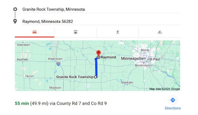 Naturally I had to find out how far Raymond was from Granite Rock, and it actually isn’t that far. I don’t know how Peter and Ane traveled, but if you take a car now, you can do it in 55 minutes.