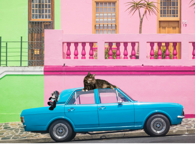 The thing about spiraling through space is that you never know exactly where you are going to land. But we knew we were in Cape Town because we recognized the neighborhood as Bo-Kaap, one of the places Luna had taken us to on our previous visit. “Even the cars are colorful here,” Foster remarked from the top of the car we landed on. It was then that we heard a familiar voice below us.