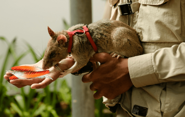 “The rats have a little ball on their collars,” he continued. “When they find what they are looking for, they pull on the ball and it signals us to give them a reward.” Foster and I were fascinated. “Wow!” I exclaimed. “Do you give them delicious bamboo?”