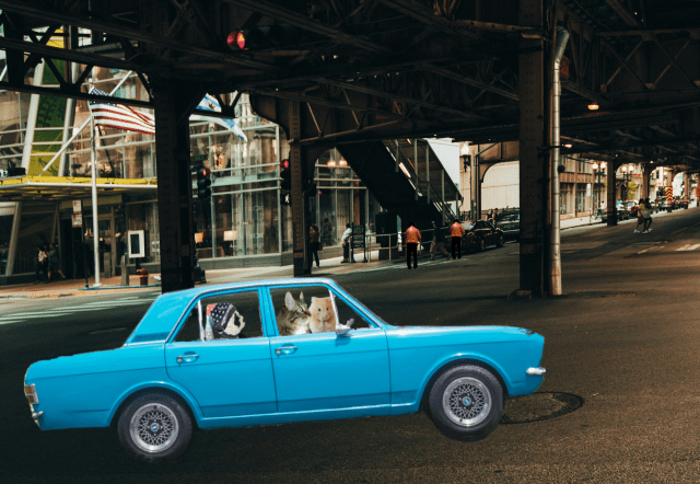 At the mention of the orange van, Foster and I exchanged glances with the hamster. “Can you take us to see the warehouse?” Spike asked. Then, turning to the hamster, he said. “Is your car nearby? I’ll drive, since I know the city better than you do.” It wasn’t long before we had all piled into the hamster’s blue car and started toward the warehouse.