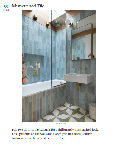 It’s a relief to know that mismatched tiles and mosaics are “in”.