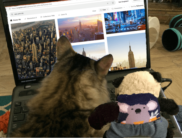 I opened my eyes a little bit wider. “What does Mom have to do with our adventures?” I asked. “She never seems to know we’ve been gone until we get back.” Panda laughed. “That’s because she’s always working on her blog and she doesn’t notice what we’re doing half the time,” he said. “But I saw she left some pictures from Unsplash.com up on the laptop, and they are of New York City!”.