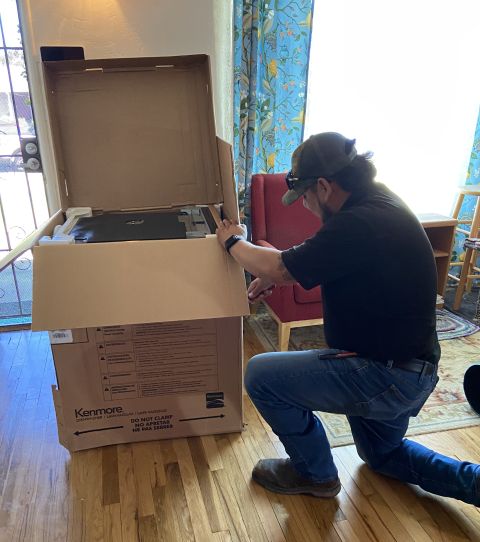 Mom knew who she was going to call, but she had forgotten the name of the company. Then she remembered she had done a blog post about them several years ago, so she went back to “That Sinking Feeling” and found the picture of their truck. She called them, and they sent Antonio and Luis out right away, and, as Cody had done in 2021, they “assessed the situation”. Around this time, Mom decided to ask the plumbers if they could install the dishwasher, so she wouldn’t have to deal with the Box Guy anymore.