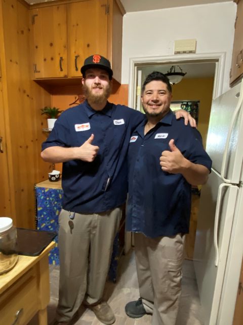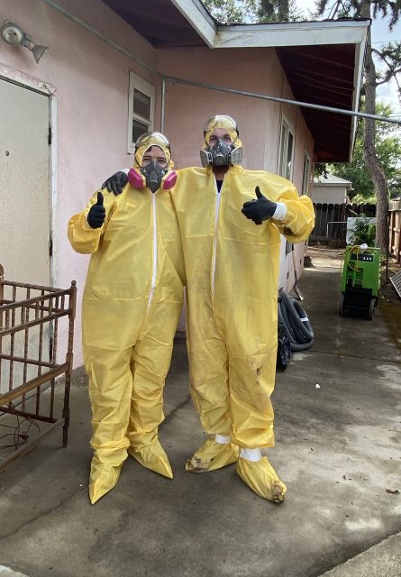 PDS Plumbing usually uses a company called ServPro, who sent Chase and Marvin from their Visalia location. At this point in my narration, Panda interrupted. “Oh, I saw them!” he exclaimed. “I thought they were space aliens at first.” I laughed. “They told Mom they feel like Minions in those yellow outfits,” I said.