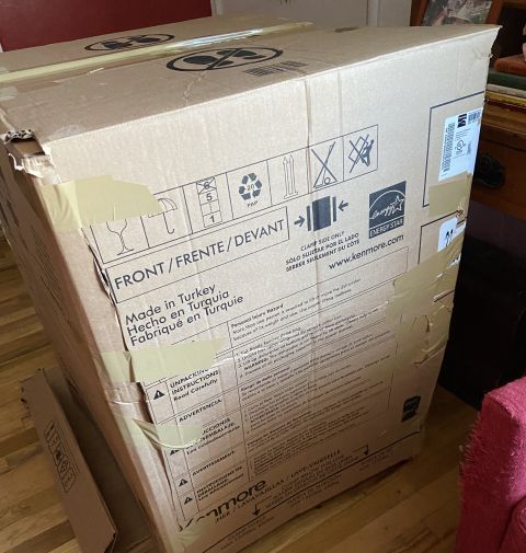1. Yeah putting in a dishwasher can’t be too fun. At least Mom knew better than to try that herself. But we have to wait until October 14 for our new one to arrive so until then, we still have our box in the front room!