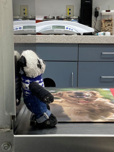 When we got to Dr. Duran’s, Panda jumped out of the carrier and onto the scale. “Hey,” he quipped. “Does it look like I’ve gained weight?”