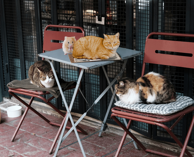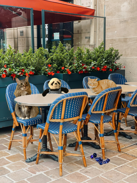 The cat listened with interest as we introduced ourselves and explained why we had come to Paris. “Tres bien,” he said thoughtfully as we spoke. We knew from Mom’s “Hercule Poirot” audio books that “tres bien” was “very good” in French. “Well, mes amis,” he said when we had finished our story. “Would you care to go with me to have a delicious snack?”