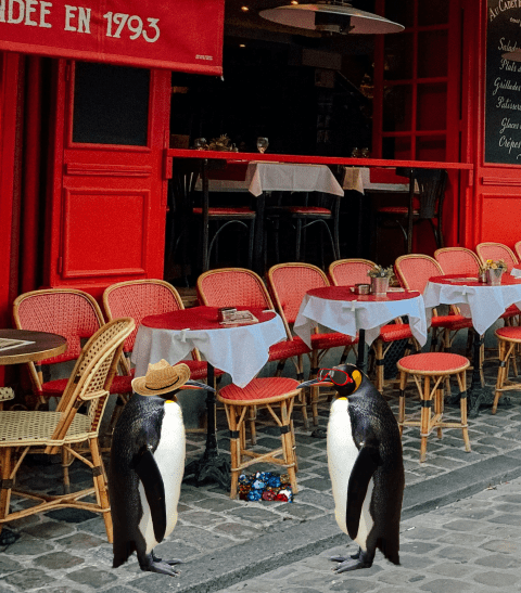 A few minutes later we got a text from the hamster telling us to meet them at “La Crème de Paris” cafe. When we arrived, everyone was waiting for us. “We have news,” the head penguin announced gravely. “And we don’t know whether it’s good news or bad news.” Breathlessly, we waited for him to go on.