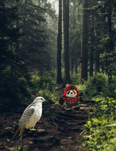 When they got to the forest, the falcon set Panda carefully down on the ground. “Just call me when you’re ready to go back,” the falcon said cheerfully. “I’ll just be visiting some of my relatives nearby.” Panda thanked him and started off down the path, wondering if this had been a good idea after all.