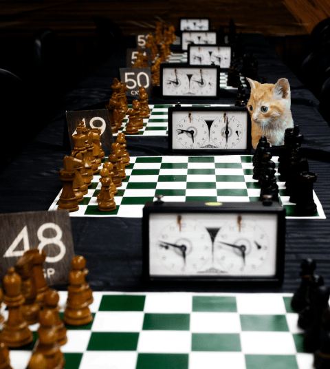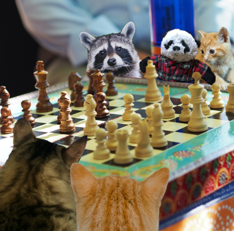 The crowd went wild as Sir Grimald held him up for all to see. This was the first time in history that a kitten had ever won the royal chess tournament. A huge dinner celebration followed, and we were all invited.
