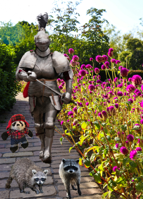 In a flurry of excitement and activity, the raccoons led us back to their colony to retrieve the rest of the chess pieces. Sir Grimald went with along in case we should run into any trouble. We got back to the castle game room with the crystal chessmen just in time!