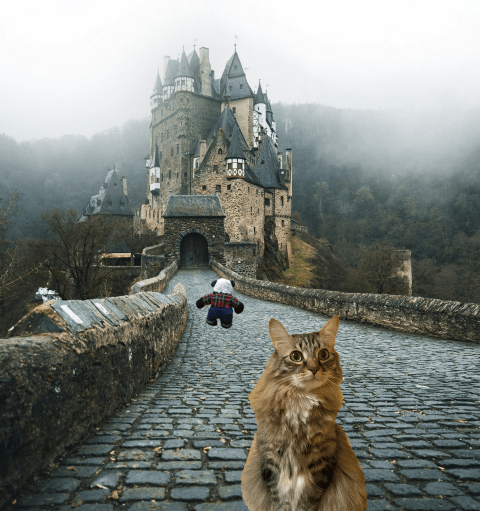 Panda and I started out down a country road, while the others went in the opposite direction. After walking for what seemed like forever, we saw a huge castle looming in the distance. Panda immediately ran past me toward it. “Come on, Foster!” he called. “This must be the castle! Let’s check it out!”